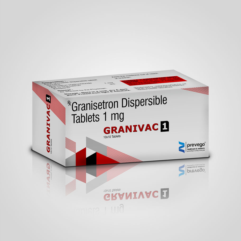 Granivac 1 Tablet contains Granisetron 1 mg, a selective 5-HT3 receptor antagonist used primarily to prevent and treat nausea and vomiting caused by chemotherapy, radiotherapy, or surgery. It works by blocking serotonin, a natural substance that triggers vomiting, thereby offering relief and improving patient comfort during treatment.