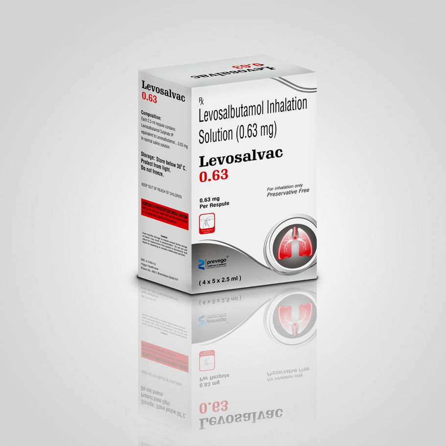 LEVOSALVAC 0.63 contains Levosalbutamol sulfate 0.63 mg/mL, a selective beta-2 adrenergic receptor agonist. It is designed for inhalation via nebulizer, offering fast and effective relief from bronchospasm in conditions like asthma and chronic obstructive pulmonary disease (COPD).