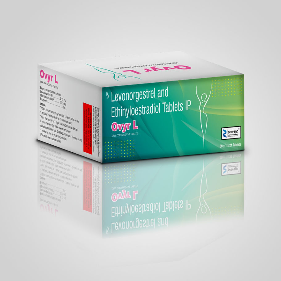 OVYR-L Tablet is a combined oral contraceptive pill containing Levonorgestrel 0.15 mg and Ethinylestradiol 0.03 mg. It is used for preventing unwanted pregnancy by inhibiting ovulation, altering cervical mucus, and changing the uterine lining to prevent fertilization and implantation.