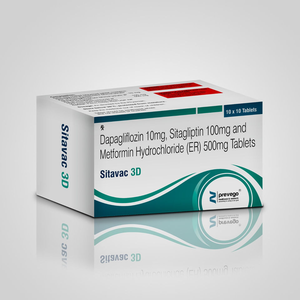 SITAVAC 3D Tablet is a powerful triple-combination antidiabetic medicine containing Sitagliptin, Metformin, and Dapagliflozin. It is prescribed to patients with Type 2 Diabetes Mellitus (T2DM) to achieve better blood sugar control when lifestyle changes and single/dual therapy are not enough.